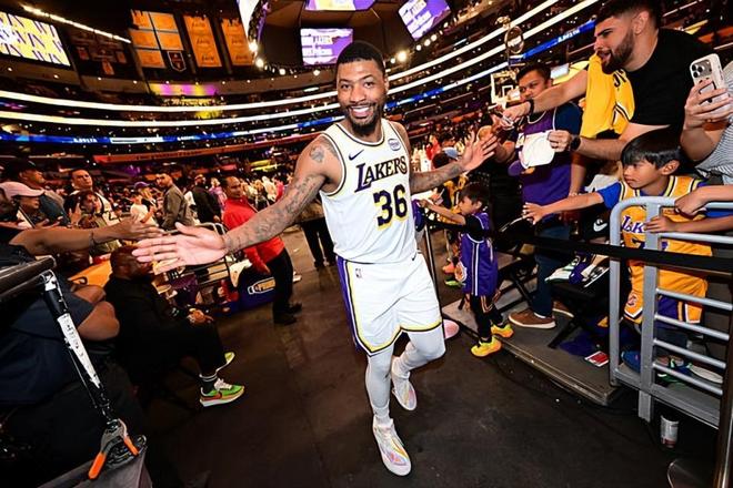 本场比赛中,湖人的先发后场大闸马库斯-斯马特(Marcus Smart)的表现还是颇有亮点的。斯马特全场出场24分52秒,投篮5中3,三分线外5中3,以超高的效率得到了9分3篮板3助攻5抢断的全面数据,还有1次失误和1次犯规,正负值也是达到了+17。斯马特在本场比赛中在进攻端找到了自己的手感,他也是命中了多记三分,得到了不少分分数,而且他也展现出了一定的传球能力和组织能力。考虑到他的球权并不多,他能够打出这样的表现已经是相当不错了。除此之外,斯马特在防守端的表现更是现象级的,他防守侵略性和积极性都是非常优秀的水平,他的绝对是一名非常优秀的防守者。至少在本场比赛中,斯马特打出了顶级3D后场球员的水准,为球队的大胜做出了不小的贡献。